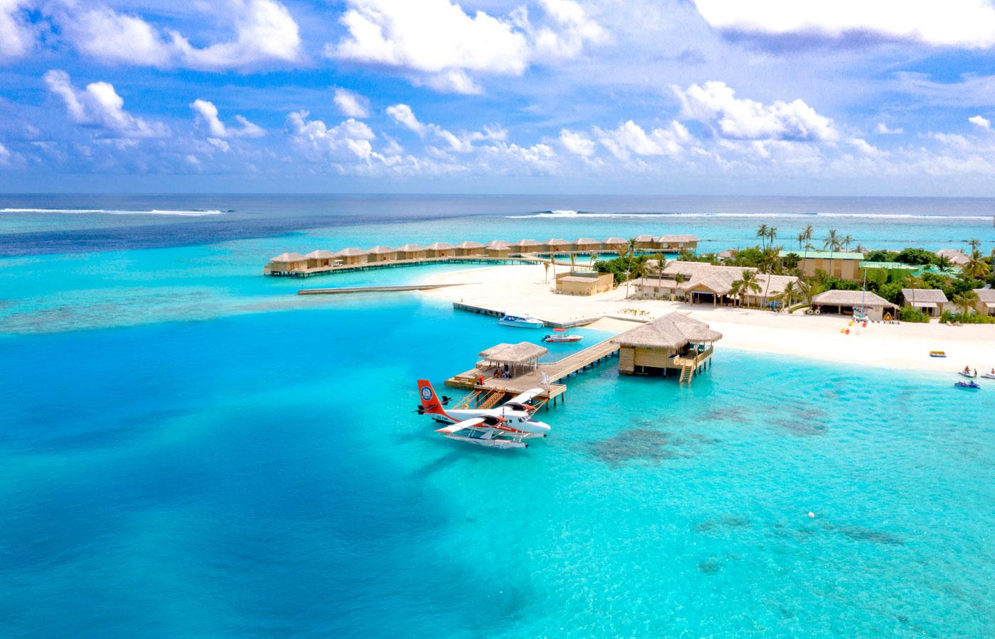 these large water villas enjoy polished wooden floors, a large bathroom with rain shower and a couple’s bath tub, a king sized bed overlooking the ocean, sofa, a large outdoor deck to relax and sunbathe with lagoon access and spectacular sunrise views.